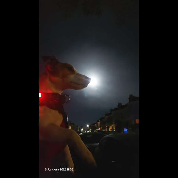 Sunday 4th Jan After the dog said 'Hi' to the moon, we set off only to be met by ice covered pavements. So we had to go further just to find some grippy ones! Share