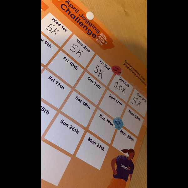 I’ve committed to the April Jogging Challenge for families facing baby loss