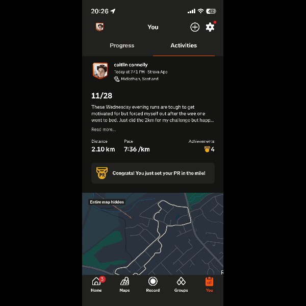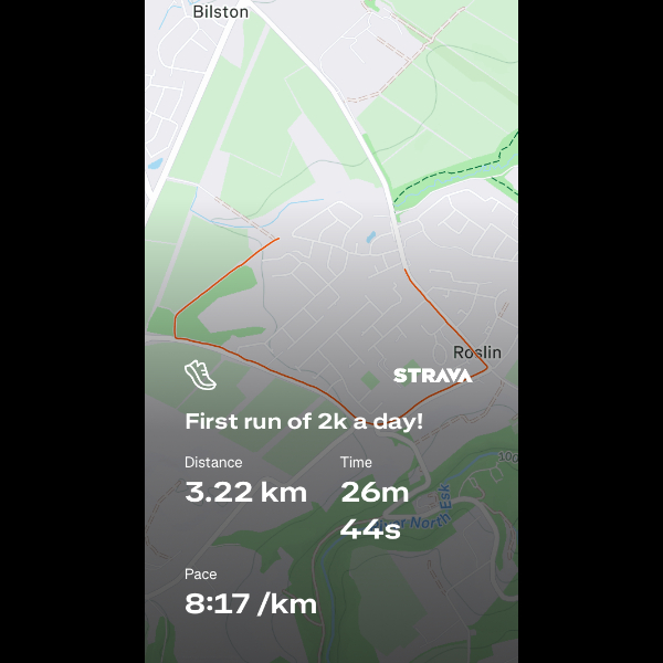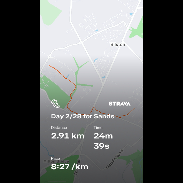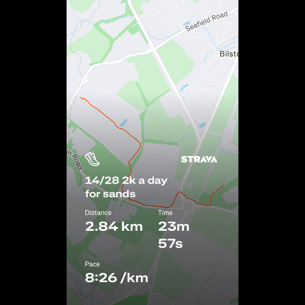 Saturday 7th Feb Just back from run 7 of this challenge and feeling so happy to have run every day this week. Hard to get out the door on Wednesday night but knew I couldn’t let myself or you sponsors down so got it done! I’ve noticed a big difference in my stamina already and can now run 5mins without stopping consistently - doesn’t sound like much but not being a runner before even that felt daunting. Week 5 of couch to 5k coming up so looking forward to being able to run for even longer. I’ll keep uploading my daily Strava images to the gallery here so you can keep tabs on me. Hope everyone has had a lovely week and I’ll report back after week 2 is complete xx Share