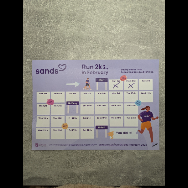 Sunday 1st FebThis February, my best friends and I are running 2k a day to raise money for Sands, who support families affected by pregnancy and baby loss and fund life-saving research.