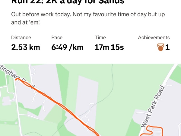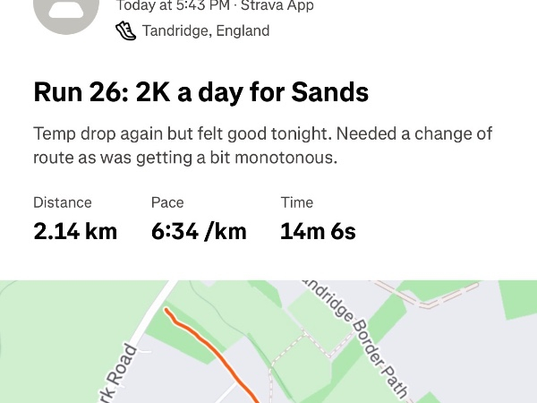 Saturday 10th Jan I am blown away with everyone’s support so far. My first two fundraising targets smashed in just 10 days. Emotional to say the least. But I like a challenge so I’m increasing my target to £248, that’s £4 for every kilometre completed by the end of January (62K). Let’s smash this for Sands! ShareNew Fundraising Target!
