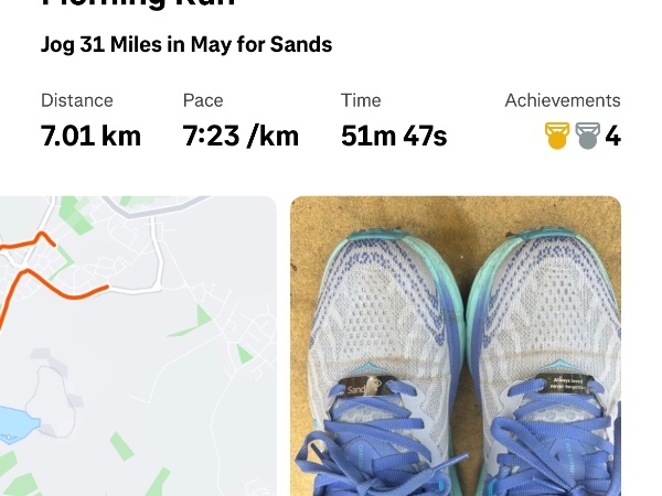 Good luck! A great charity and we've seen how much effort you've been putting I'm on Strava!