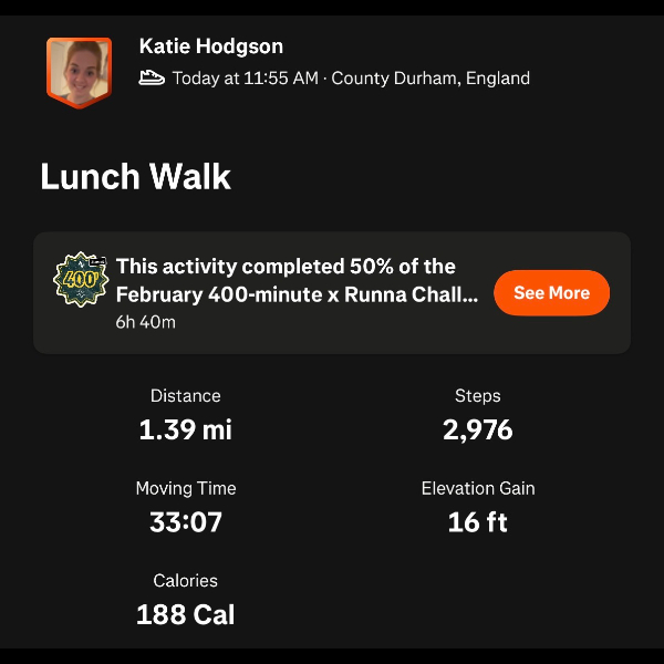 Thursday 12th Feb Little update as my little one hasn’t been well so haven’t done my 2k in two days but I will get out later today to get it done