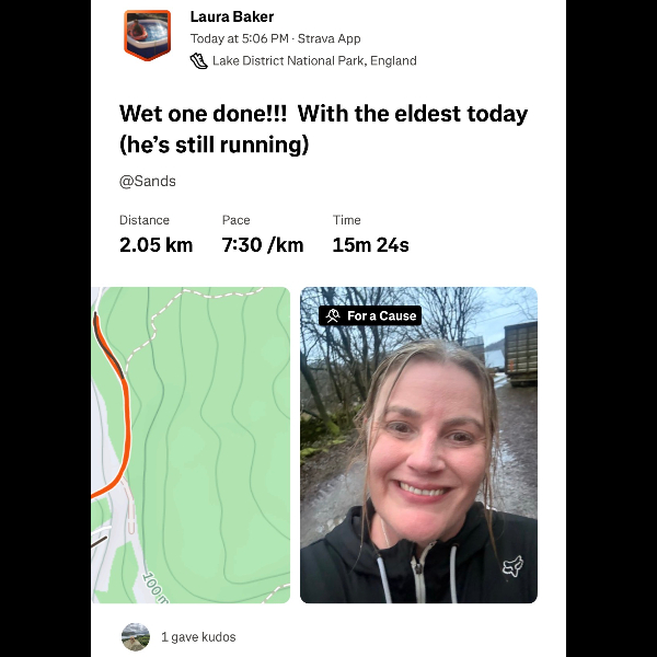 Well done Laura - weather hasn’t been on your side but it’s for a brilliant cause. Not many more days left