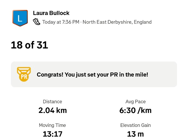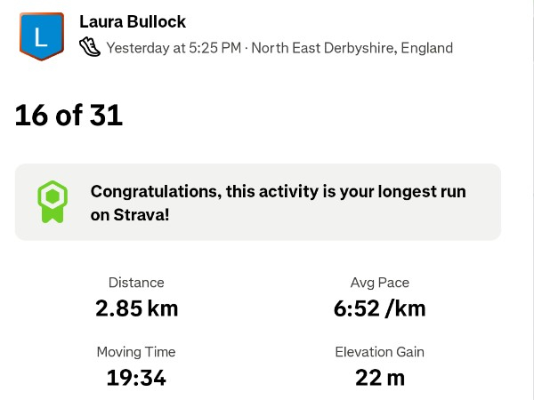 Amazing Laura! Incredible to run every day! What an achievement and a great amount of money to raise for a great charity. You should be so proud of yourself!
