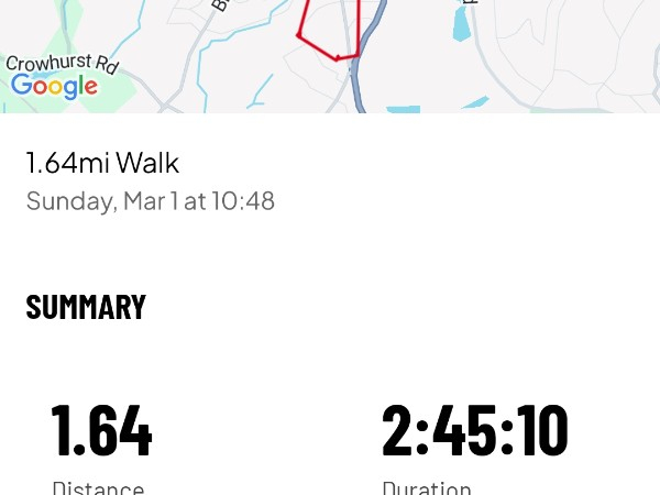 2.63 km done today. Its a start! Cold and wet day. And according to my map I can walk over houses 😂
