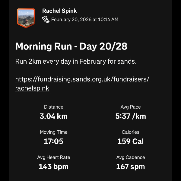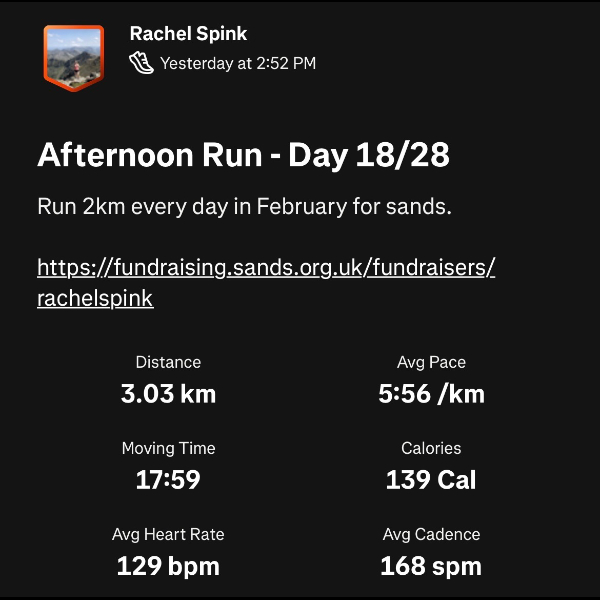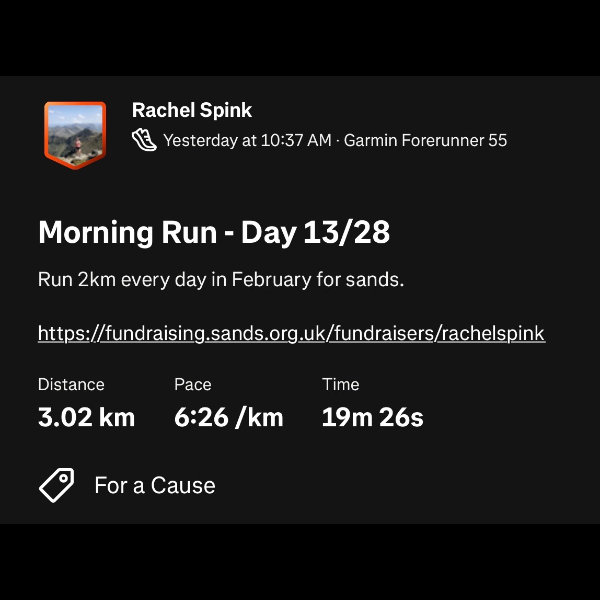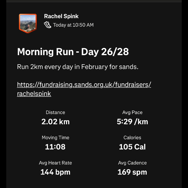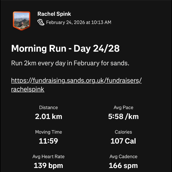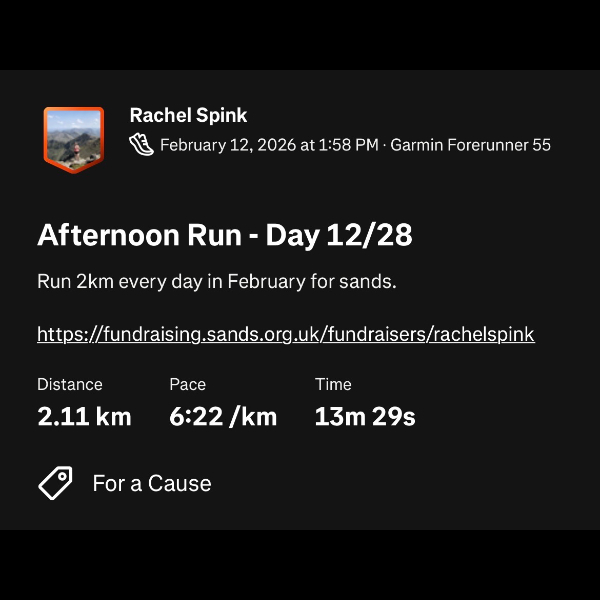 I’ve committed to running 2k a day this February for every much-loved baby sadly not here today.