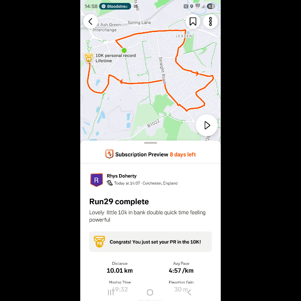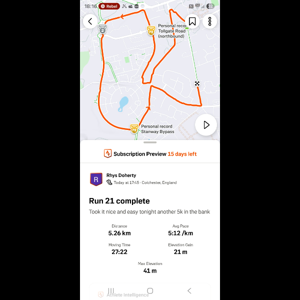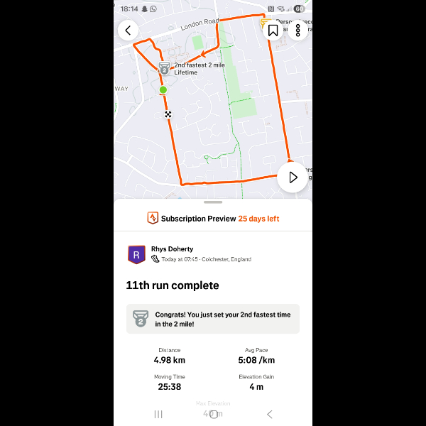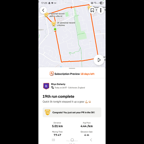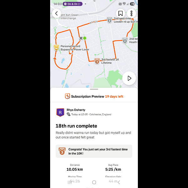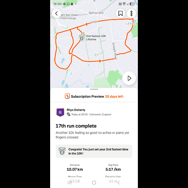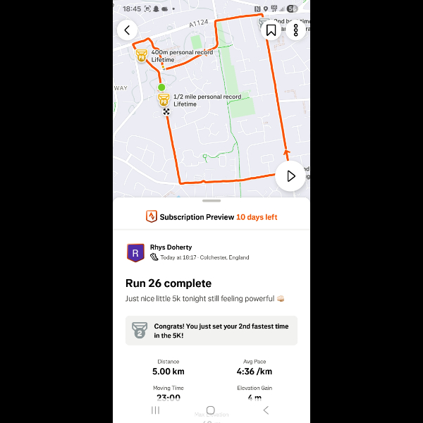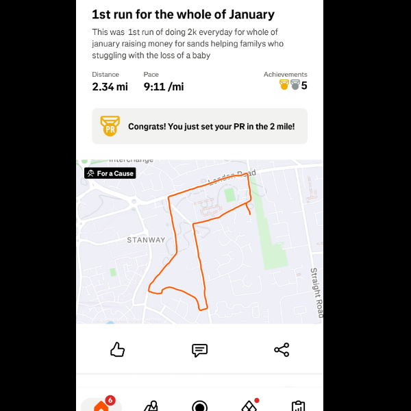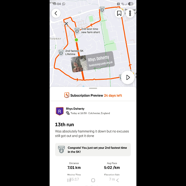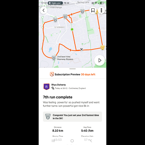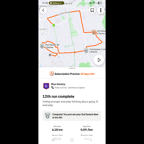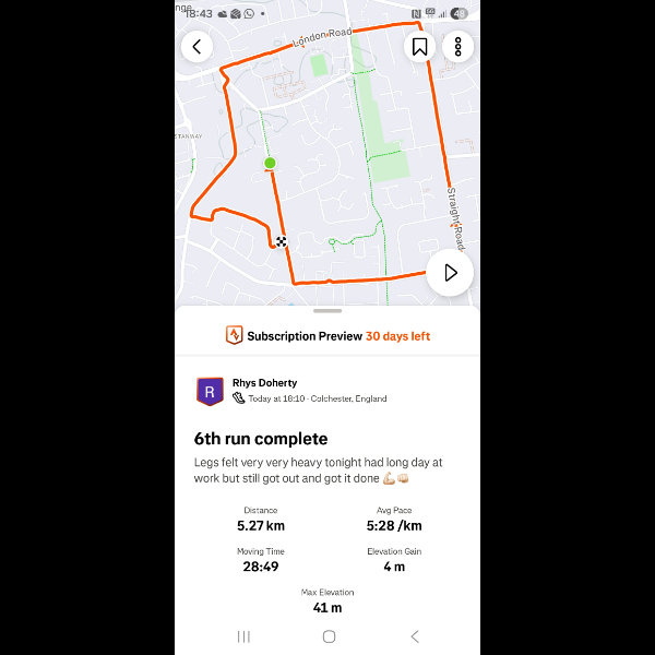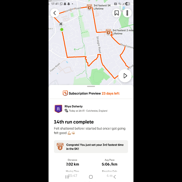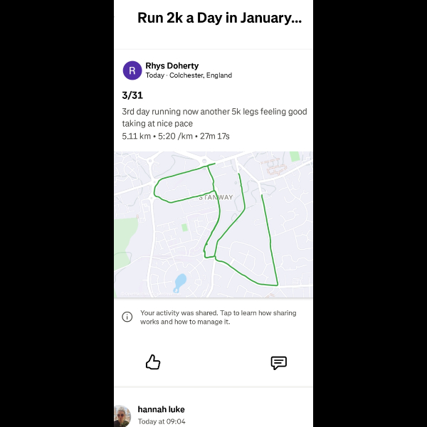 Saturday 3rd Jan Another 5k done legs feeling good im feeling amazing loving getting out for a run everyday let's keep it up Share