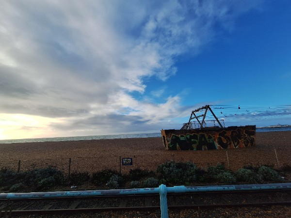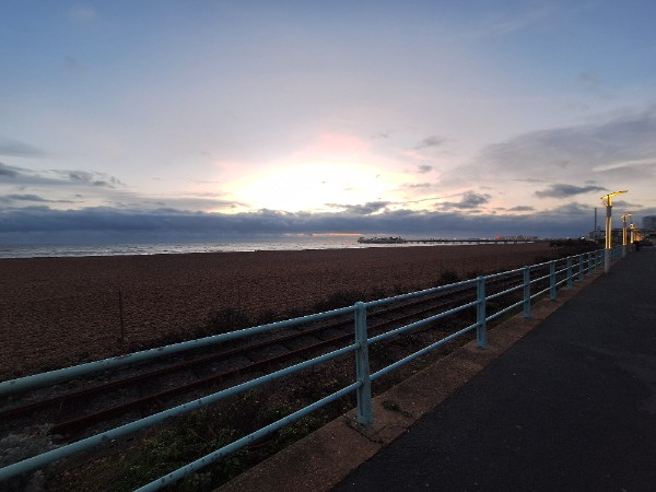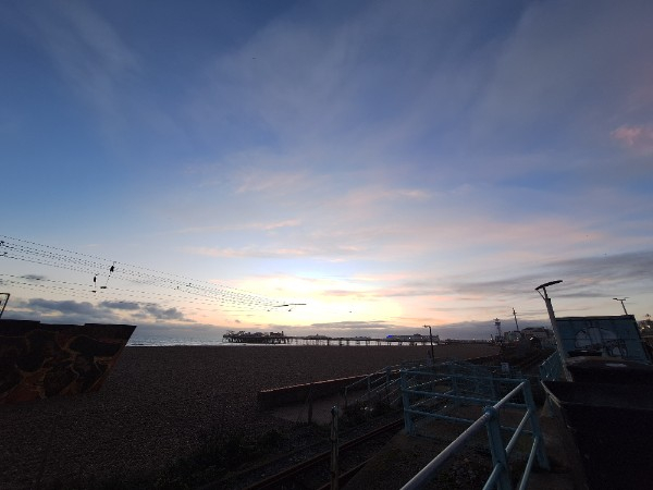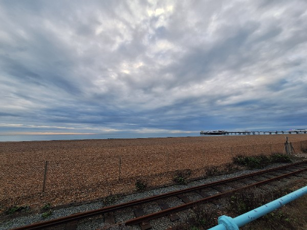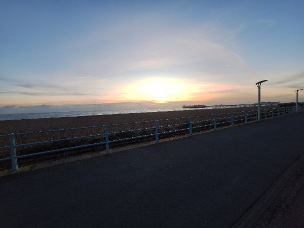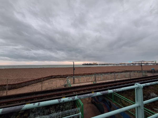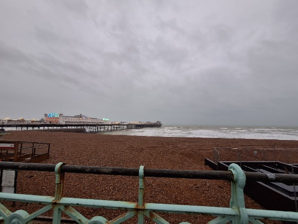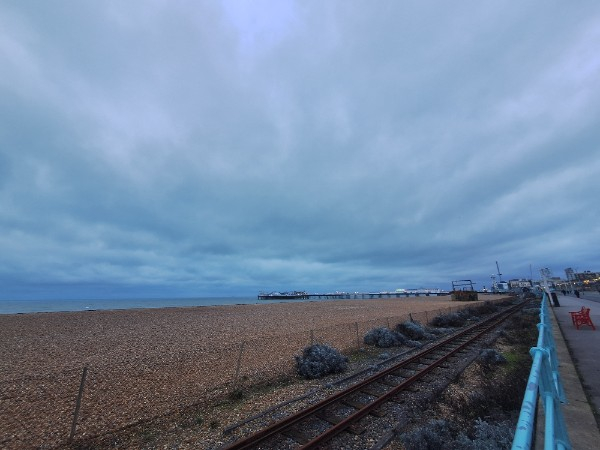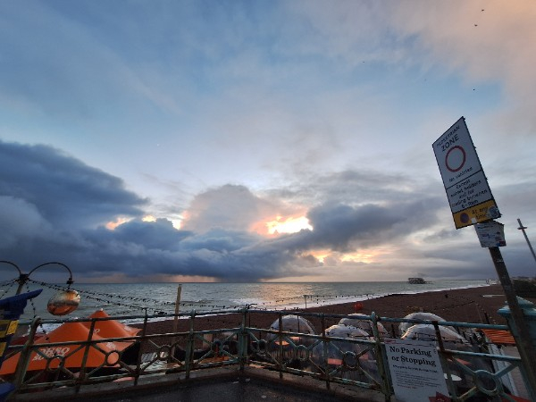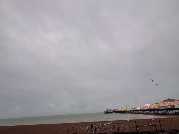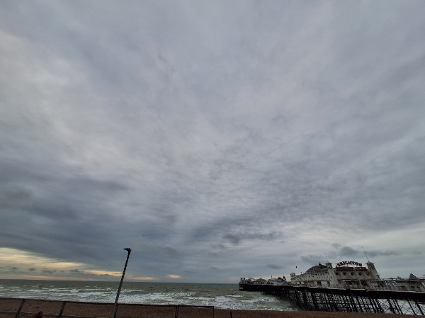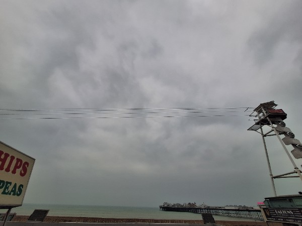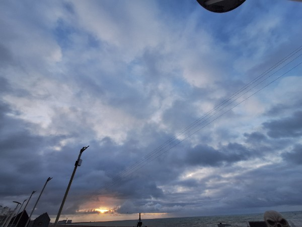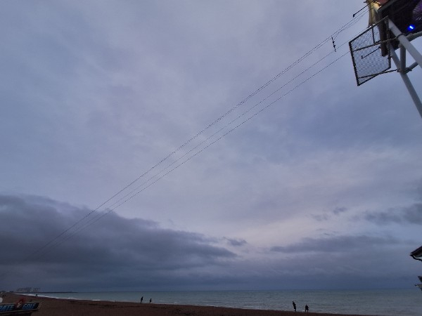 Not a photo of the sky because I had to shield my phone from the pelting rain but a very damp seafront!
