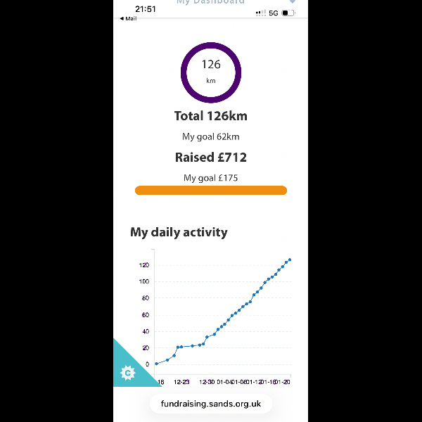 Congratulations on your achievement! Sands is a great charity x